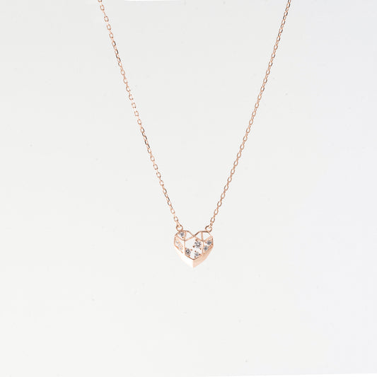 Rose Gold Diamond Mesh Heart Necklace