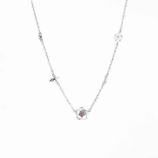 Silver Pink Floral Charm Jewelry Set