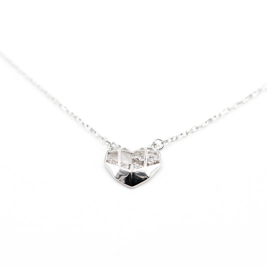 Silver Diamond Mesh Heart Necklace