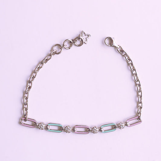Turquoise Lavender Chained Enamel Silver Bracelet