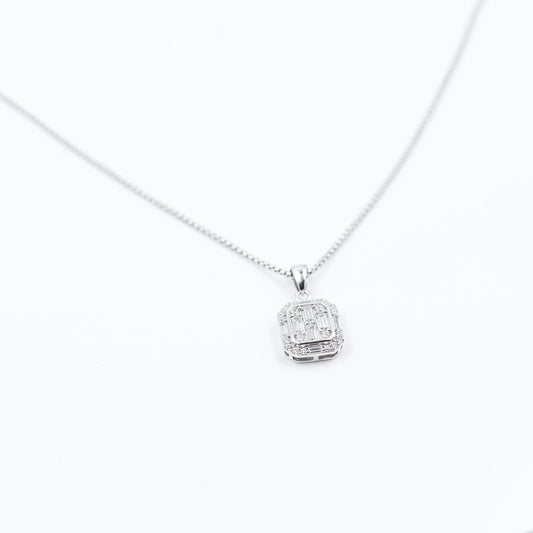 Silver Diamond Halo Pearl Pendant Jewelry Set