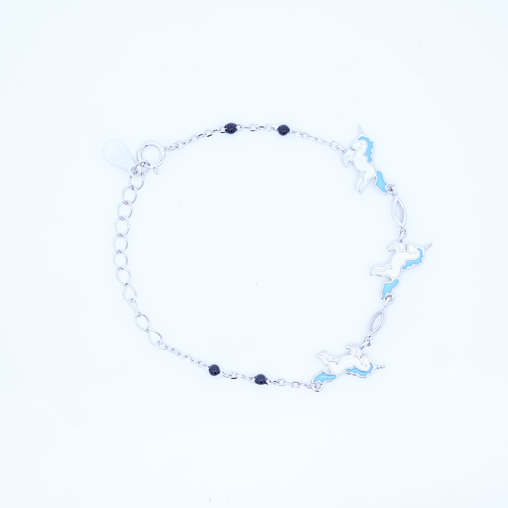 Silver Blue Unicorn Kids Bracelet