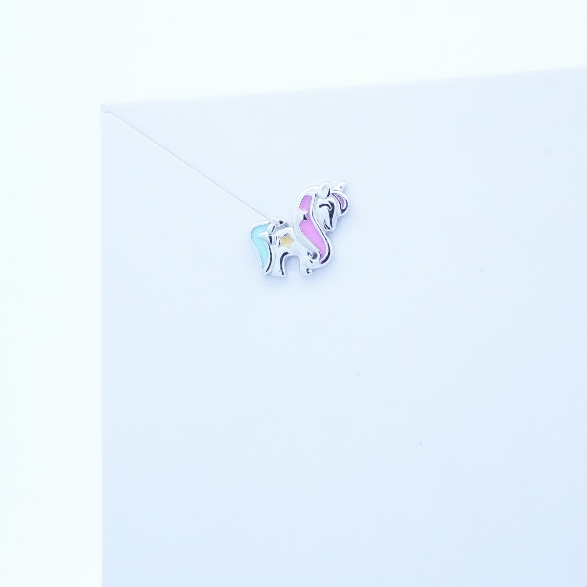 Silver Pink Blue Unicorn Kids Earrings